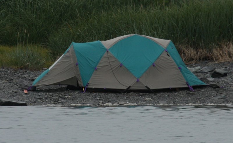 These are reasonable questions, but in the context of an Alaska wilderness site, I acted appropriately. First, if I went ashore to move the tent and if the kayakers were asleep inside (something I didn't know), they would have the right to shoot me on the spot. Later, they could say, "I thought it was a bear outside my tent, instead it was an idiot — I shot him, so sue me." As to the kayaks, an observer might well draw the conclusion that I was trying to steal two rather nice boats, and my explanation might ring hollow — "I was keeping them from drifting away." Sure, buddy.