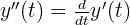 (Some may object that "velocity" should be "speed" if no direction is provided.) In this notation, y'(t) is called the "first derivative" of y(t), or y(t)'s rate of change with respect to time. And y''(t) is called the "second derivative" of y(t) — strictly speaking, y''(t) is the rate of change in y'(t) with respect to time.
